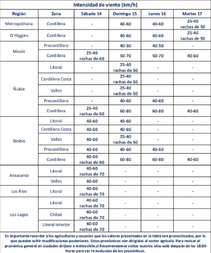 Por lo mismo, el llamado es mantener la precaución necesaria y estar informado, sobre todo a los agricultores que deberán "posponer las aplicaciones de agroquímicos durante esta jornada, con el fin de evitar deriva y contaminación cruzada de productos".