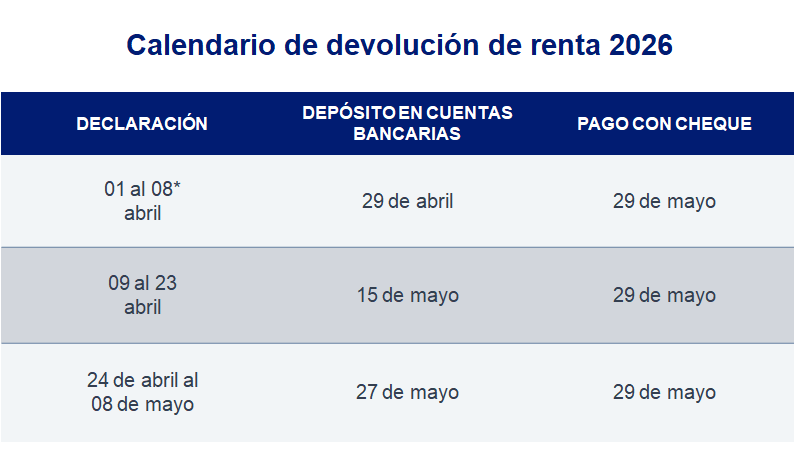 Los contribuyentes que declararon en este período y que hayan solicitado el depósito en cuenta bancaria, recibirán la devolución de impuestos, en caso de ser aprobada, el día 29 de este mes.